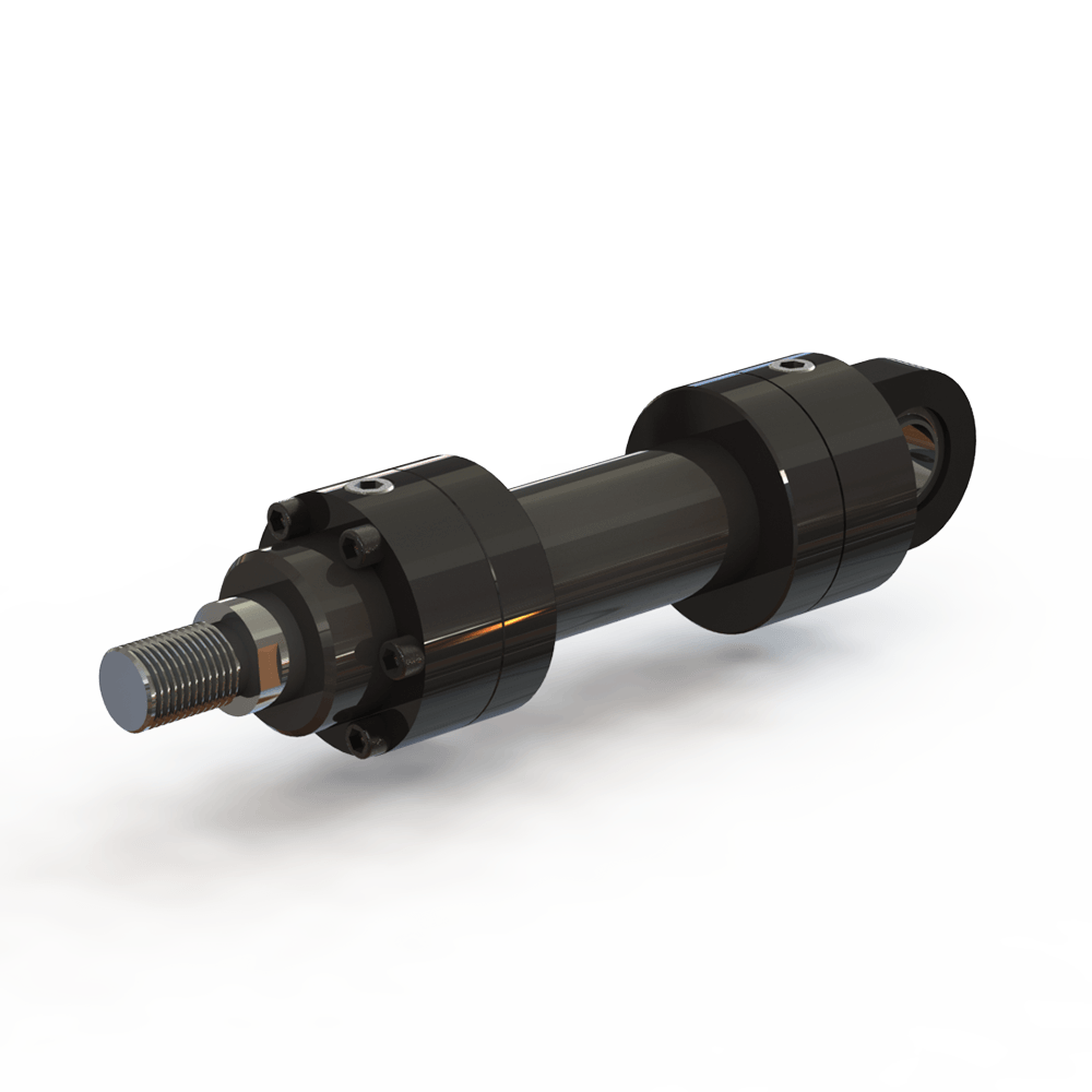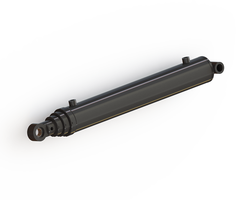 "Cilindro idraulico tipo 63-702-120 Telescopico a semplice effetto Ictus 120 Chiuso 53 Perno dell'asta 2 Larghezza asta 2 Perno della base 2 LMSD 6 Fasi 3 Esteso 275"