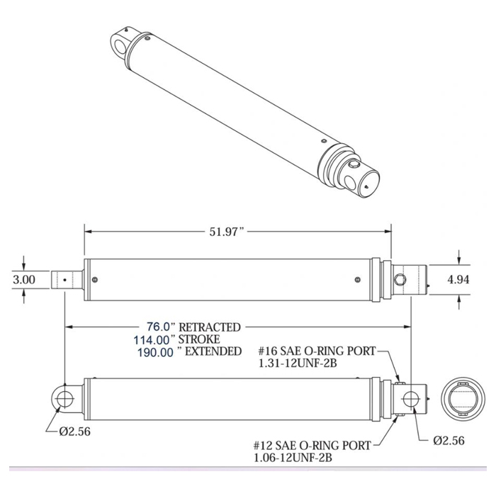 Cilindro di sollevamento idraulico 6"-5" x 114"